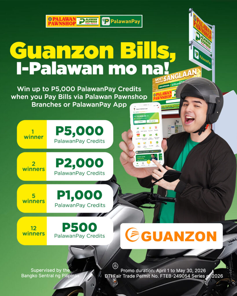 The raffle promo is open to all Palawan customers who pay Guanzon bills through the PalawanPay App & Palawan Pawnshop branches. Each successful transaction earns 1 raffle entry