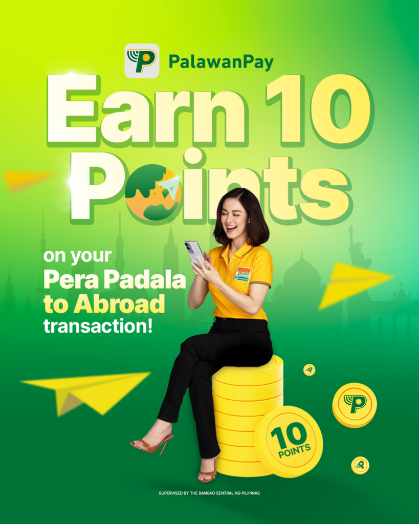Ten points is equivalent to Php 10.00, will be credited immediately after every successful Pera Padala to Abroad transaction made through the PalawanPay app. It can be used as payment to any succeeding transactions with transaction fees on the app. Users will receive an in-app notification of points earned and can also view their points in the Rewards section of PalawanPay app.